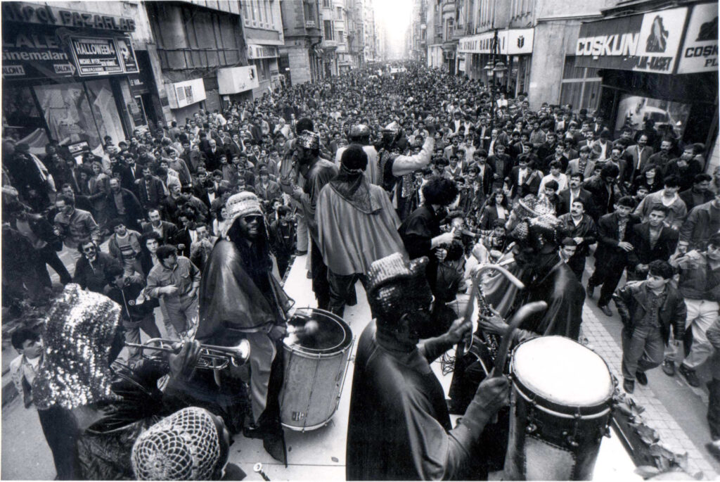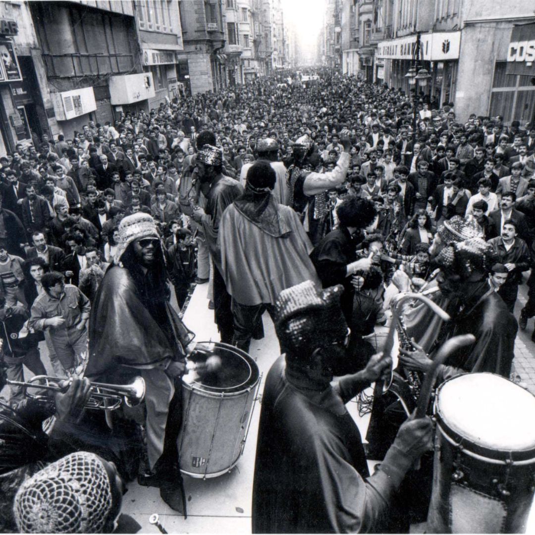 Sun Ra’nın efsane performansı ve Babylon tarihi için bir milat olarak kabul edilen konser İstiklal Caddesi boyunca gerçekleşmişti. Topluluğu kamyonun arkasında cadde boyunca halka açık bir şekilde çaldırmak fikri Arhan Kayar’ındı. Pozitif o dönem yeni kurulmuş olduğu için bu gösteri aynı zamanda arayıp da bulamadıkları içerikte bir tanıtım olacaktı kendileri açısından. Etkinlik İstiklal Caddesi’nin araç trafiğine kapanacağı döneme denk gelmişti, bu da işlerini kolaylaştıracaktı ama iş bir izin almaya bakıyordu. Dönemin Kültür İşleri başkanı