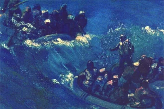 A ship coming out the snow”