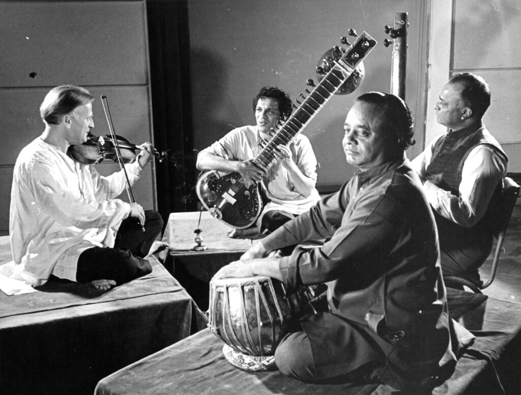 New York’ta doğan, daha sonra İngiliz vatandaşı olarak meslek hayatının büyük bölümünü İngiltere’de geçiren keman virtüözü Yehudi Menuhin ile Hint klasik müziğinin ustası Ravi Shankar’ın yolları 1966 yılında İngiltere’deki Roma hamamlarıyla meşhur Bath kentindeki uluslararası festivalde kesişir. “West Meets East” adlı bu albüm de aynı yıl kaydedilir. Hint klasik müziğini Batı’da tanıtan belki de en çok Beatles’dan George Harrison olur. Harrison Shankar’dan sitar dersleri alır ancak bu enstrümanda ustalaşmak çok uzun zaman gerektirdiğinden istediği seviyeye ulaşamayacağını düşünerek dersleri bırakır.